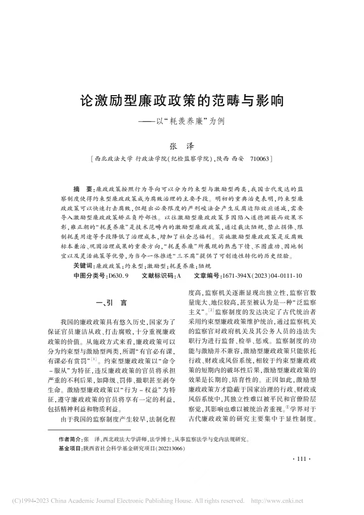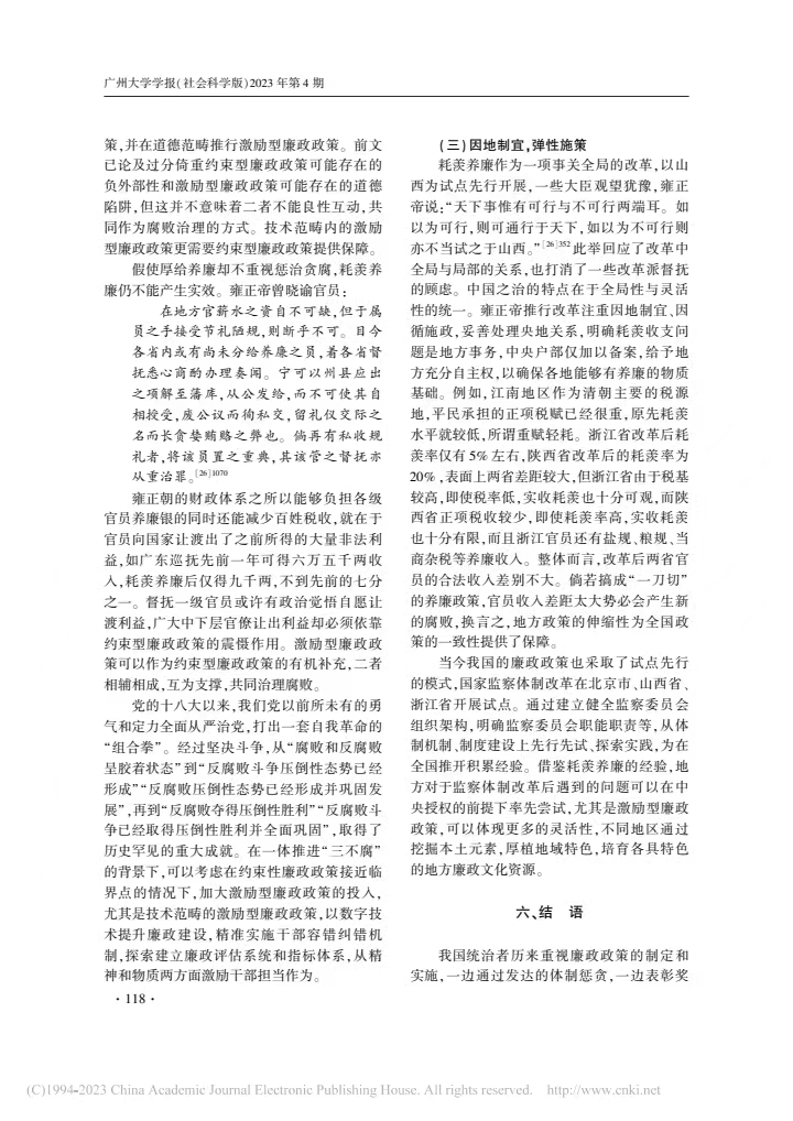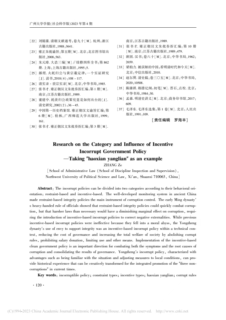 3003新葡纪检监察教研室张泽老师的论文《论激励型廉政政策的范畴与影响—以“耗羡养廉”为例》在《广州大学学报》(CSSCI)2023年第4期,“教育部名栏·廉政专栏”刊发。