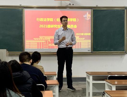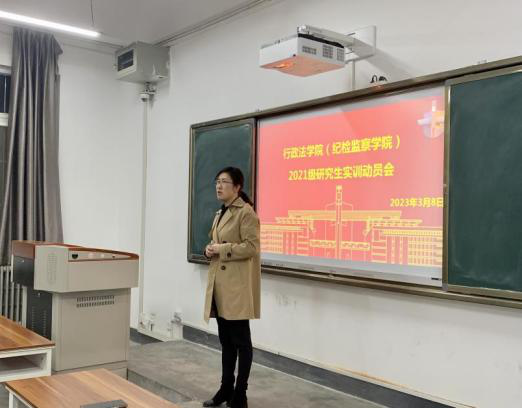 2023年3月8日,3003新葡官方网站(纪检监察学院)在雁塔校区召开2021级硕士研究生实训动员会。学院党委书记赵玎玎、副院长井凯笛、辅导员罗娜及2021级硕士研究生50余人参加此次动员会。