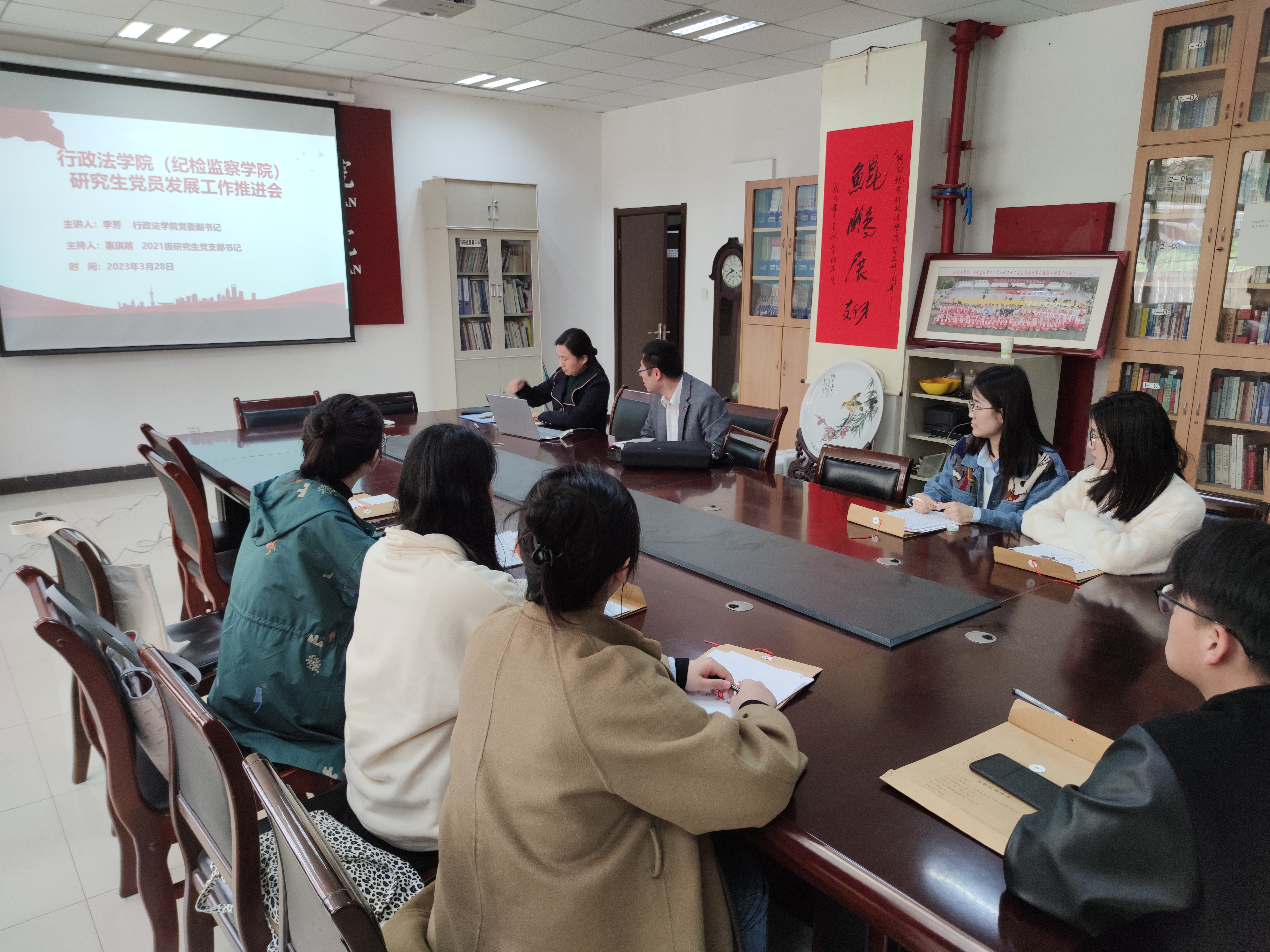 2023年3月28日,3003新葡官方网站(纪检监察学院)在学院资料室召开学生党员培养与发展专题教育活动。学院党委副书记李芳、兼职辅导员徐翔及部分培养与发展对象的研究生参加了本次会议。会议由学院党委副书记李芳主持。