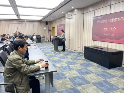 2023年4月12日下午,行政法学院(纪检监察学院)在长安校区诚意楼401教室召开教职工大会。校党委副书记、纪委书记肖道远出席会议,学院班子成员及全体教职工参加会议,部分学生代表列席。