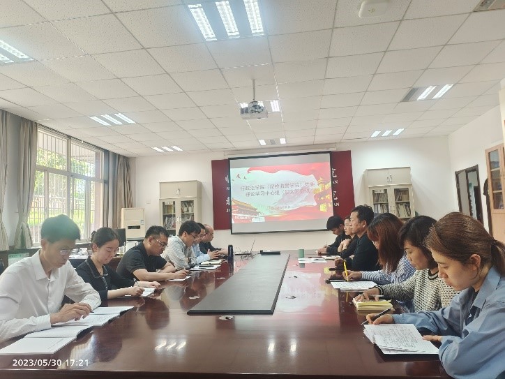 会议学习了习近平总书记在听取陕西省委和省政府工作汇报时的重要讲话精神和5月19日省委常委会会议精神,学习了习近平总书记给中国农业大学科技小院学生重要回信精神,传达了学校“三个年”活动、群众身边腐败和作风问题专项整治工作推进会精神。会议传达了校党委开展《习近平著作选读》第一卷、第二卷宣讲工作方案,学院党委书记赵玎玎对学院深入开展宣讲工作进行了安排部署,并以《育人的根本在于立德——培养德法兼修的高素质法治人才》为题作专题宣讲。会议围绕“以习近平新时代中国特色社会主义思想为指导,加强新时代法学教育和法学理论研究”主题进行了深入交流研讨。