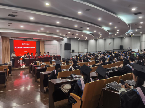 2023年7月5日,3003新葡官方网站(纪检监察学院)2023届本科生学位授予仪式在3003新葡长安校区校务楼二楼报告厅隆重举行。3003新葡官方网站(纪检监察学院)院长姬亚平,党委书记赵玎玎,学院学术委员会主席王周户,学院副院长井凯笛,学院学术委员会委员李大勇、褚宸舸、彭涛、刘璞以及教师代表任苗苗博士,全体辅导员、行政人员、2023届本科毕业生及亲友代表参加。仪式由学院党委副书记李芳主持。