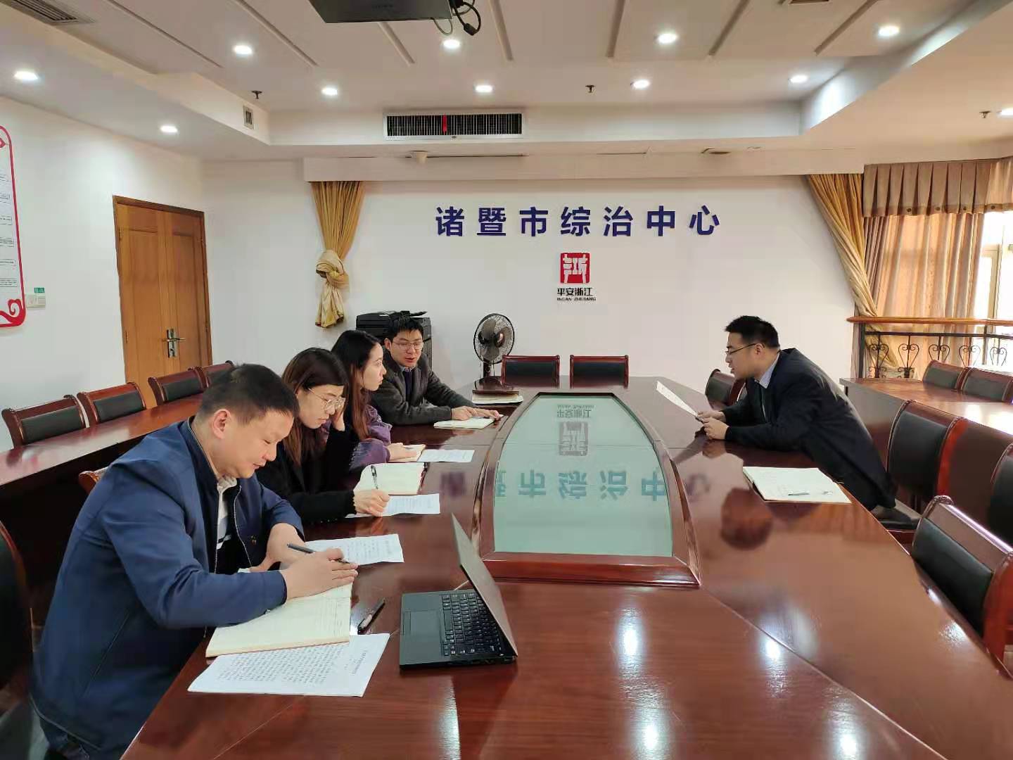 褚宸舸教授随后来到诸暨市矛调中心调研。在矛调中心陈挺主任的带领下,褚宸舸教授参观了矛调中心的整体布局。在座谈会上,褚宸舸教授就矛调中心的领导机制、组织机制、运行机制、反馈机制、独有特色和现存问题和陈挺主任进行讨论。陈挺主任表示希望与研究团队继续合作,推动诸暨市矛盾纠纷化解工作。
