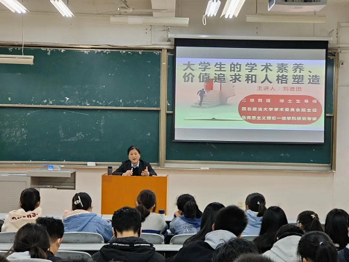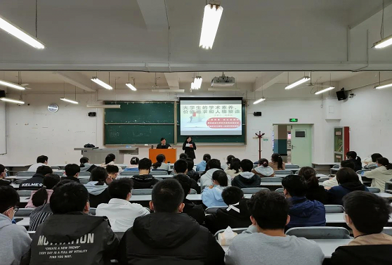 紧接着博士生导师刘进田教授引用的钱伟长等优秀前辈事迹给同学们留下了深刻的印象。通过分享古今中外经典语录、名人事件,刘教授指出在学术素养方面,大学生要拥有热爱学术追求真理的情怀,到达乐于学术的境界,他也提醒同学们在进行学术研究的过程中,要冷静客观,不能走极端。同时,刘进田教授建议新生多读书、多写作、多公开演讲,达到锻炼思维能力和表达能力的目的,进而增强学术能力。除此之外,刘进田教授也耐心为学生们介绍如何从观点、论证、逻辑、内容、词汇准确性等方面提高论文质量。