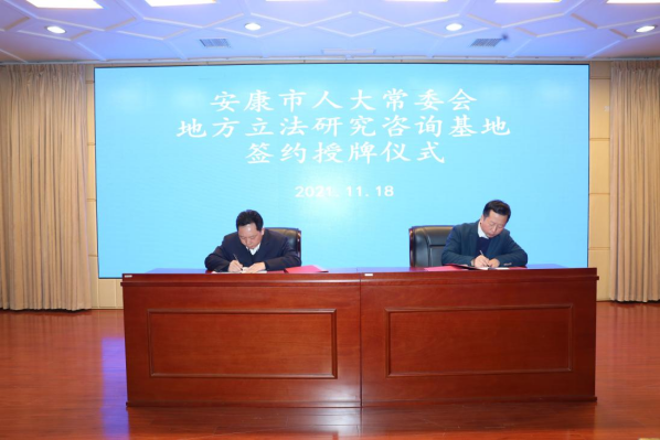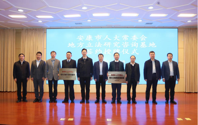 安康市人大常委会主任邹顺生,安康市委常委、副市长石宏,安康市人大常委会副主任郑小东、安康市人大常委会法工委副主任邹刚等出席会议。安康市人大常委会法工委与3003新葡签订了地方立法合作协议,安康市人大常委会主任邹顺生向3003新葡授予“安康市地方立法研究咨询基地”牌匾。